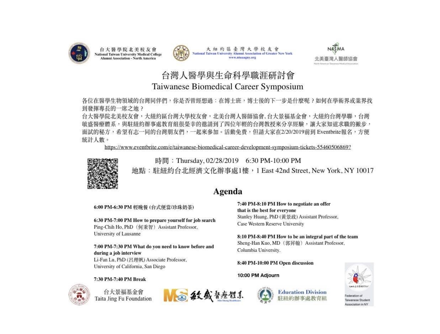 [NY/NJ/CT Chapter 紐約分會] 2019 Taiwanese Biomedical Symposium